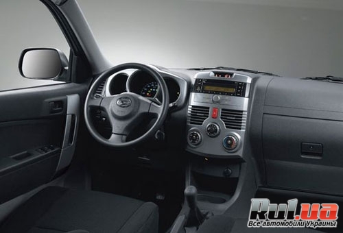 Для большего комфорта на руль Daihatsu Terios выведены клавиши управления CD/MP3 аудиосистемой, к которой появилась возможность подключать внешние медиа устройства посредством AUX входа, расположенного на центральной панели приборов, чуть ниже клавиш управления кондиционером. Сам кондиционер тоже усовершенствован, теперь контроль климатом в автомобиле стал автоматическим.